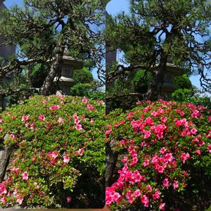 今年の皐月もいっぺんに咲いてくれない…蕾が中に𖤣𖤥𖠿𖤣𖤥 老木の紅葉、幹が太く…レイアウトで残し( * ॑꒳ ॑*)⸝⋆。✧♡ 🏷ピンクワールドへようこそ