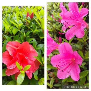 雨上がり☔️ 今朝の庭で咲くお花たち♡ ペチュニア💜🤍✨ さつき💖🧡✨ 雨の雫💧✨で より瑞々しいお花さんです🥰💕 🏷乙女色クラブ 🏷水滴の水曜日 🏷水滴 🏷しずく つけました♬