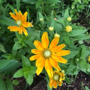 🍀おはようございます🍀 ルドベキア プレーリーサン💛🧡 黄色の花びらの中心はオレンジ色🧡 バックの🌿はヒメウツギの葉。 短く剪定していましたが葉っぱが出揃いました🌿 体調不良でしたが、 二色🧡💛からパワーをもらって … 元気になりました💪🙌 優しい💬をいただきありがとうございました<(_ _)>💕 また宜しくお願いします*_ _)ペコリ♡ 😊