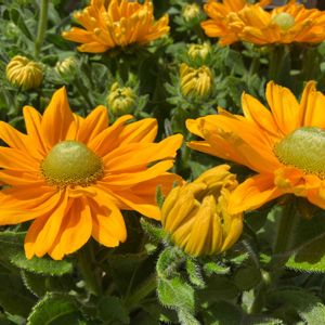 ビタミンカラーのルドベキア。 この暑い夏に元気に咲いてくれています。 最初のはプレーリーサン。昨年秋に見切り品苗を植えておいたら、次々と蕾がでて、こんなに花が咲きました。かなり丈夫。宿根してくれたのかな。 2枚目はトトゴールドかな。これも宿根してくれないかなと、試しに植えてみました。でも、一年草かも。 好みの花ではなかったのだけど、暑い夏に、次々と花を咲かせてくれる強さが貴重に思えてきたら、愛らしく感じられるようになりました。