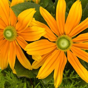 ルドベキア・プレーリーサン(学名:Rudbeckia hirta 英名:Rudbeckia Prairie Sun)の花🌼🌿🌸 プレーリーサンは、花の直径が12cmに達する事もあり非常に大きく豪華な花姿をしており、また普通のルドベキアとは違い中央の筒状花が柔らかなイエローグリーンをしているため爽やかな印象を与え、黄色と薄橙色の2色の花色が明るく開放的な雰囲気をつくる魅力的なルドベキアの園芸品種です。 豪華に咲き誇る美しいルドベキアをお楽しみください。 🌼🌿🌸
