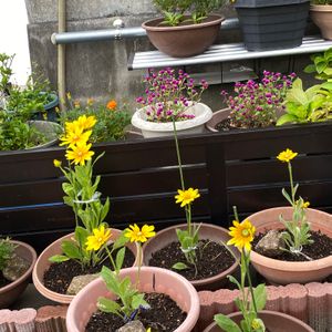 ☆ルドベキア・プレーリーサン 昨年の採取した種撒きからの ルドベキア💛 ☆ジニア🩷 ☆トレニア、こぼれ種から💜