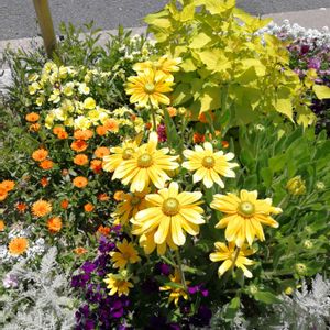 手入れが行き届いている素敵な花壇 モリモリ咲いてきました ルドベキア・プレーリーサン 別名 松笠菊 花笠菊 🏷️ビタミンカラー 参加させて頂きます おはようございます 今週も宜しくお願いします 2023・5・22 大島小松川公園