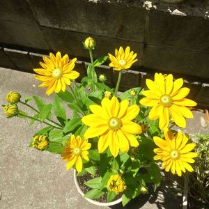 🌿🌻💛ルドベキア プレーリーサン💛🌻🌿 変わったお花😲 プランターから10㎝ほどの高さで真上を向いて咲いているんですよ(*´∀`*)ポッ