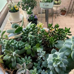 今日もせっせと寄せ寄せ… …お気付きだろうか…ワタスの寄せ植えには…必ず若緑が入っていることを…💀キャー いや、知らんわ!て言わないでぇー🤣