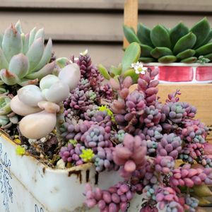 きょうは9:30から午後5時まで 多肉のメンテナンス(๑˃́ꇴ˂̀๑) 頑張りました✨ これは『この子たちどうしよ丼』🤣 株が頼りなくおひとり様にできない子、 葉挿しがあちこちに点在してる子などを 寄せてみました😃🎶 助け合って冬を乗り切ってね😊💕 1600pic目です🥰 いつも温かくて楽しいコメント ありがとうございます💕 これからもよろしくお願いします🤗🎶