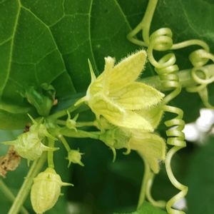 オキナワスズメウリ💚 行灯仕立ての株、やっと雄花が咲きました 前回(2023年)より10日ほど遅い開花です😅 雌花はだいぶ前から咲いていて、このまま結実しないで終わるのかもと心配していました💦 よかったー!😆