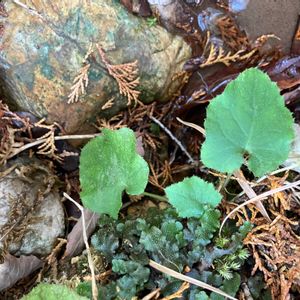 フキ(蕗) キク科フキ属の多年草 淡い緑色の苞に包まれた若い花茎は、フキノトウ✨ 自宅庭のフキは、昨年、サツマイモの蔓を蔓延らせたせいか😅、 数株しか、出てこず、フキノトウも出てきません😓 公園に出かけたら、少しだけ、フキノトウが見られました😆 川沿いに生えていて、 遠くから見たら、 ワサビのように見えました😅 湿り気のある場所が好きなのかな~と思いました。