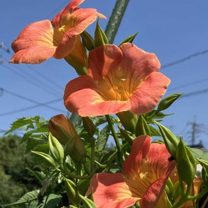 今日は熱中症警戒アラート発令中🥵 ①②暑くて急に伸びて開花したノウゼンカズラ ③宿根フロックス ④今年の母の日カーネーション最初の蕾はスカスカでしたがカットすると今も次々開花中 ⑤ジニア
