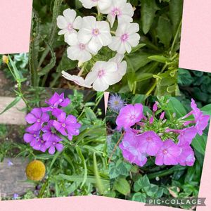フロックス ⬆️は種蒔きっ子 下の二つは毎年咲いてくれる2種です🌿 右はピンクで 左は薄紫のはずなんだけど ほぼ似た色になってしまいました😅