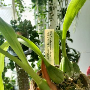 昭和記念公園で開催中のJOGAの展示会に行ってきました。オーキッドバレーミウラさんから2株をお迎えしました。 1️⃣Phal. Sogo Yenlin variegata…斑入りの葉っぱが素敵な胡蝶蘭。花茎が出てます🤩 2️⃣Den.Ekapol Mutation' Miura Charm(実生苗)…どんな花が咲くかな?花が咲くのは来年かな? オーキッドバレーミウラさんで3年前に購入した実生苗のカトレアに初シースが出てきました。