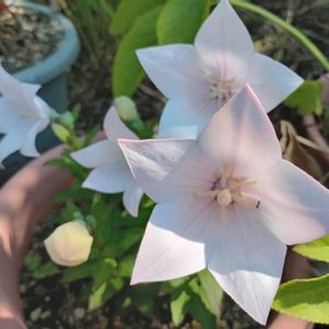 こんばんは🌆 旦那が庭の剪定で折ってしまった桔梗の蕾を花瓶に入れました。 4個の蕾、一つが開花して、二つめの蕾も爆発➡️ しっかり開花しました。 この子は、トイレに置いておきましたが、旦那の家族が遊びに来ていて、この子の開花に誰1人気が付きませんでした😥 なんか、残念😢こんな瞬間なかなか見られないのにねぇー あと、二つ咲いてくらるかなぁ🤭