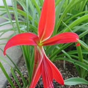 おはようございます✋😊🐓⏰ スプレケリアと言う ヒガンバナ科のツバメ水仙サンは、 昨日の夕方🌆開いていました🤗💓 春に咲いた時よりも、茎が伸びて(40cm位)お花も立派に見えました✌️😉 4年前の10月に、宮崎県のGS友サンからいただいた子です✌️😉 昨年は1輪しか咲きませんでしたが、今年は5月に3輪、そして今回1輪と咲き、成長を感じました✌️😊 植物の力強さを感じ、とても元気もらえました✌️😊