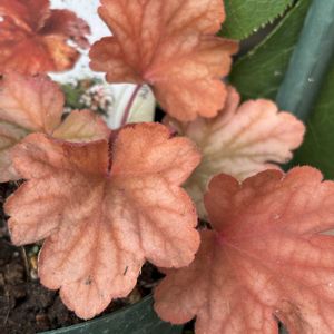 ヒューケラたち☺️夏に向け、体力温存に花枝を切り、葉っぱもだいぶ整理をしましたが、お気に入りの赤い花だけまだ残してある🌺 全部東側にあるけれど、移動できるものは半日陰→日陰へ。動かせない①②③はデッカい15号鉢の底をくりぬいて鉢ごと半地植えにしてあるのですが、これが1番育ちます☺️ あと株分けしたちびっ子は、あちこち地植えしてあったりとか☺️ それにしても、今からこの暑さではヒューケラには厳しい夏になりそう、、。 とにかくみんななんとかがんばって夏を超えておくれ🙏