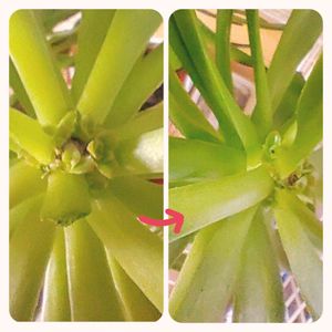 グリノービア(品種忘れた😓)のカット苗、閉じた状態でお迎えしたのでまとめて一鉢に植えてしまったら、こんなことに😅 葉っぱが開いてぎゅ~ぎゅ~…。 1つだけ開くのを諦めたのか閉じたままだったので救出💦