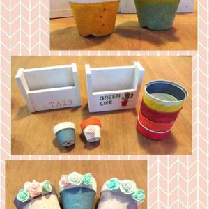 リメ鉢、リメ缶、木製プランター…。 下塗りを終えたものを仕上げたけれど😅 なかなか上手くはいかないなぁ😔 想像してるものと出来上がるものの質の違いに愕然🤣 まぁ、自分で使うものだから良いんだけど。
