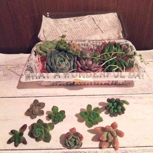 昨日届いたカット苗寄せ植えセット😊 ベビーフィンガー 七福美尼 snow sea Longissima x Sahara マッコス バニラビズ ピンクザラゴーザ などなど~ と説明文にあったけど、どれがどれか😅 誰か教えてください🙏