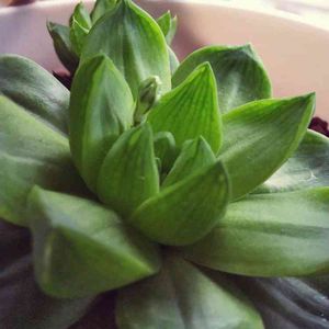 お家管理にしたハオルチアのロゼア🎵 花芽が出てきてます😆 外よりお家の方が居心地良かったのね⤴️