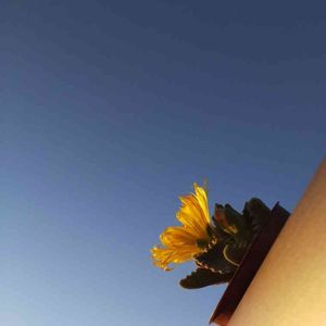 青空ショット? 夕焼けversion🎵 四海波のお花が夕日に照らされてます😊 もう1つつぼみがあるけど、まだまだ咲きそうにない😅