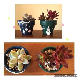 100均出身のステレオスペルマム。 少しずつ葉の数が増えてます☺️ 新作ソクモンちゃん🎵 クリスマスversion😁 やっぱりスッポンポンより、服着せた方が可愛くなりますね😅