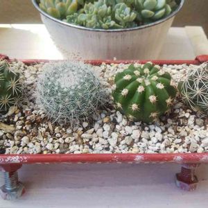 昨日の夕方、DAISOに行ったらサボテン🌵が‼️ 昼間に買ったとこだから我慢しようと思ったけど、やっぱり家につれてきちゃいました😅 ↖️柱サボテン↗️ウチワサボテン ↙️ノトカクタス⬇️ミニサボテン↘️ギムノカリキューム と書いてあるけど、品種名は何だろう🤔