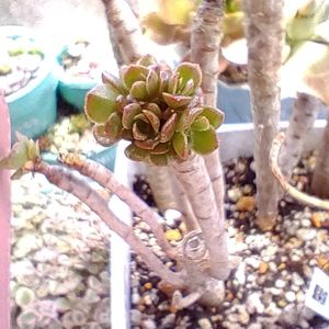 冬の間に棒になってしまったアエオニウム…多分カナリエンスかな💦 南側の2階ベランダから北側の庭に置き場所変えたらいっぱいお子様誕生😅 半分あきらめてただけに嬉しいです😊