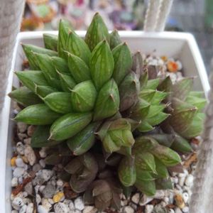 外管理の名無しのハオルチア✨ 夏の間中、赤茶けてましたが最近なんだかきれいな緑になってきてます😊 環境に慣れてきたのかな?