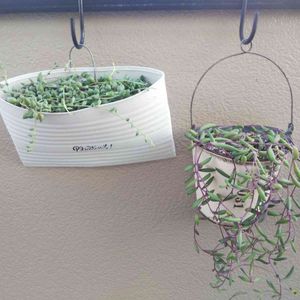 ミモちゃんにもらったエンジェルディアーズとルビーネックレス✨ 思ってた以上にたくさん😅 東海エコフェスタで買った吊り鉢に植えたらもうモリモリ🤣 この夏、カリカリにしちゃったから、今のこの状態をキープできるか、それ以上にモリモリに出来るか⁉️ 頑張ります😄