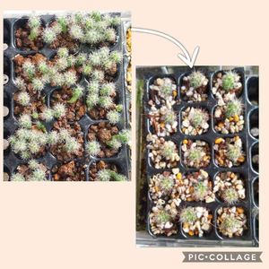 たみにくさんから貰ったサボテン🌵から採れた種を植えて5ヶ月くらい経ったかな😊 ちょっと狭そうだったので大きいの(5㎜くらいの)だけ、お一人様にしてみた😁 このマスがキツくなるサイズになるまで後どれくらいかかるんだろう🤔 サボテン実生ここまで来たの初めてだから楽しみ〜😊