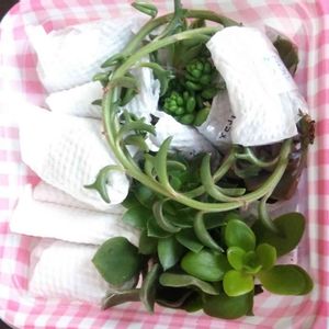 久しぶりの投稿💦 おはようございます☺️ 先日、メルカリでポチった『京の華』さんの多肉ちゃんが届きました✨✨ 最近何かとバタバタしてて、多肉事から少し遠ざかってましたが、この子達で寄植えするの楽しみ〜😄 ベランダの放置多肉の状況も見ないとイケないけど😅 雪に埋もれて⭐になったコの片付けとか…。 …とりあえず、楽しいことからやっちゃう😁