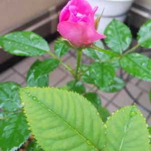 5日に投稿したミニバラが咲きました☺️ 鮮やかなピンク🎵 まだつぼみがあるのでしばらくは楽しめそう😄