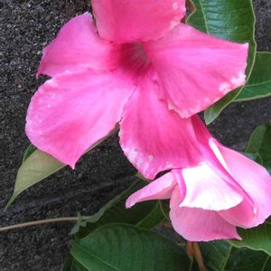 昨年お迎えしたマンデビラローズジャイアント冬越しして今年もお花が咲きました~❣️ 大きなピンクのお花で夏の庭を華やかにしてくれています☺️