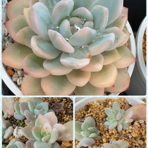 ずっと探していた苗 安くて良い苗と出逢えました♪ 偏った斑入りは個人的に好きでは無いが(ぷくぷく系なら構わないが特にエケベリアでは致命的かな) この子は、ちゃんと覆輪斑です♪ 葉挿しっ子は根が無くダメでした(>_<) でも、この子と出逢えたので良かったです(*´︶`*)❤︎ ここまで成長していれば斑入りでも『モンロー』なら丈夫だと思いたいですね(^^ゞ 今は痩せているけど… 2~3ヶ月後に根付いて、葉に厚みが出て来てからが楽しみです♪