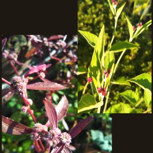 地味だけど明るい日差しの中で気持ち良さげですね! 左手はアルテルナンテラポリゴノイデス😄 舌を噛みそうな名前! 赤葉細葉千日紅でもあります! 赤い葉が細いでしょ? 夏頃からずーっとこの感じ🤩 右手は千日小坊(センニチコボウ) 背が高くなるので 夏頃、切り戻したのに😅やはり大きい😣 どちらも花とみせて花ではなさそうね〜😉