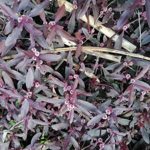 🌸赤葉細葉千日紅🌸 アルテルナンテラ ポリゴノイデス ✱赤葉で細葉の千日紅です。 花は小さくて3ミリほど! 必ず葉の基部に咲きます! 赤葉千日紅と、違うのは 花の付き方(飛び出てません)と、葉の細さ❣️ とっても素敵なカラーリーフですよね💓 花は夏から冬まで咲いてます。 こぼれ種でまた来年咲きますよ🤭