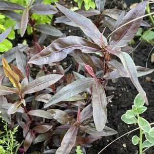 とても覚えにくくて カンペ必須の花たち。 🌸アルテルナンテラポリゴノイデス🌸 (赤葉細葉千日紅) 日本語の方がわかりやすいね🇯🇵 葉の基部から地味な花が咲いてます。 🌸スーパーチュニア ラブローズプラス🌸 PWさんのだからか 丈夫で花付き良いわ。 去年のが越冬してます😃