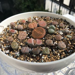 リトープスさん寄せ植え。ひとつひとつの名前はわからないけど、それぞれ個性があってカワイイ。