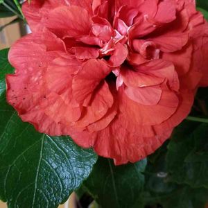 昨年の秋頃には5鉢あった我が家のハイビスカスさん~ 今では3鉢それでも人は首を傾げる~首のストレッチ❓(笑) ハイビスカスサマーレッドさんサマーブリーズさん そして昨日咲いてくれたアドニス・ハイビスカスダブルオレンジさん 八重咲きのハイビスカスさんなんです 花友さんから8月28日(土)に譲っていただきました 前回の投稿が11月25日(土)今回で6輪目の開花になりますー‼️ このダブルオレンジさん ハイビスカスの中でも長く咲くタイプ(2~3日) 冬の室内でも大きく咲くタイプなんです‼️ 夜になると萎んじゃう普通のタイプとは違って 1日中咲くタイプなんです 茎が細くて倒れそうだったから支柱を立てての開花です 嬉しいですね~ 季節外れの南国ムード気分を盛り上げてくれてます