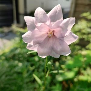 我が家でも、ピンク色の桔梗が咲きました。 昨年秋に花の終わった苗をお迎えし、植えておいたら、庭の片隅で咲いていました。桔梗は紫色と思い込んでいたけれど、ピンク色もいい感じ。