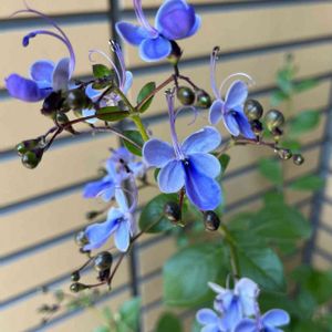 ❀クレロデンドルム/ブルーウィング❀ 青い蝶々の別名があり、爽やかに咲いています✨ 鉢物管理で普段は明るい軒下にいます♡ 花芽がたくさん つぼみも愛らしく ホントニきれいなブルーのお花です❀ 見てると暑さが和らぎます❀(っ˘з(˘⌣˘ )~~❀