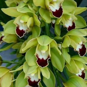 〰(๑•ᴗ•๑)♡〰〰(๑•ᴗ•๑)♡💚💚💚 今日のお花 シンビジウム 💚〰〰(๑•ᴗ•๑)♡(๑•ᴗ•๑)♡〰〰〰 今日は穏やかな気温でε-(´∀`*)ホッ 青空って(・∀・)イイネ!!