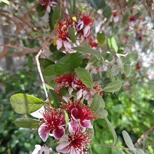 フェイジョア がこんなに咲いてるなんて‼️ 去年は気が付かなかったわぁ ここの緑道は私にとっては年中チェックが必要な場所です 🚲は押し歩きなのでキョロキョロしながらパチリのお花を探す緑道です💚💚💚