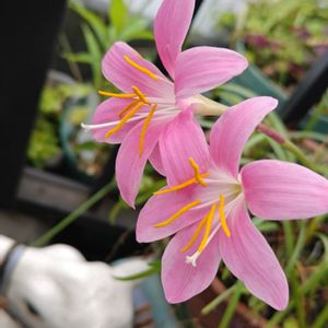 ゼフィランサス サフランモドキ タマスダレ 茎が伸びすぎてたところに昨日の☔ 咲いたけど、雨にたたられてしまった やっと☔上がり撮れたけど〰〰〰 夕方また降るとか 気温上がってきましたよ─────── 🩷ピンクワールドへようこそ