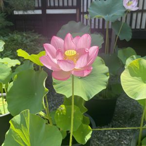 🌸ハス🌸 (ハス科 ハス属) 我が家のハス🌸今年は蕾を入れて17本かなぁ。 味噌瓶2つ(8本🌸と5本🌸)炊飯器の釜1つには4本の花🌸🤣←ちょっと深さが足りないかなぁ~って思ったけど今年は花が4つ 蕾も入れて😊 ハスを育てて何年になるかな〰10年ほどかな。始めは慣れなくて春の植え替え1つだけでも大変だったけど慣れてきたらハスにスイレンにセキショウにガガブタ8つ 半日で出来るようになった🤭 時間がないと出来ないけれど 花見たさに頑張れる💪🎶 今年も咲いてくれてありがとう🙏💕 実もちゃんと出来ますように🙏 今年こそは煎って食べてみたい🤣食いしん坊😋去年は我慢した😁 去年 開花の時に雨ばかりだったけれど今年は大丈夫でした😊 ☀暑いからハスもガバガバ水飲むよ🤭どんだけ~って思うけど他の植物もジャバシャバ…同じかなぁ😄
