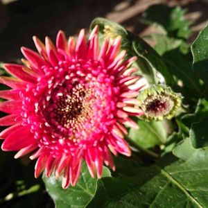 ガーベラのつぼみが開いてくれました🎶 根元に小さなつぼみが控えています。 当分楽しませてくれそうです🌼