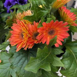 夕陽を見上げるガーベラさん。相変わらず安定の花付きの良さ🌼 最近はサフィニアやカリブラコアの摘芯、ナメクジ退治、紫陽花のお世話に忙しいです💦もっと早くから防虫対策しとけばよかったな〜🌿