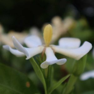 花手水に紫陽花と共に涼やかに飾られていた、「梔子(クチナシ)」の花でおはようございます🥰🤍🍃⛩️✨ 娘と訪れた『源氏物語』執筆ゆかりの地であり、紫式部の邸宅跡地としても有名な京都・廬山寺で出逢えました❣️ https://www7a.biglobe.ne.jp/~rozanji/32genjitei.html “梔子"は、日本を始め、中国、台湾を含む東アジアが原産のアカネ科の常緑低木🌳🍃 純白で肉厚の一重咲きの6弁花が一般的ですが、園芸用ではバラのような八重咲き品種のもたまにお見かけ致しますね💞 三大香木(=梔子、沈丁花、金木犀)の一つで、特にリラックス効果のある甘く濃厚な香りが人気です🫧☺️ ー花言葉は、「喜びを運ぶ」、「洗練」…他。