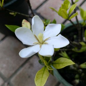 梔子(クチナシ) 一重咲き 夏の香木、梔子が咲き出しました😊 八重咲きも時間の問題で咲きそう…😙 でもなんかこの一重は葉っぱの色が悪い😥 栄養不足かなぁ… あっ、愛情不足か😅 しかし梔子はよく虫が付きますねぇ。 オルトラン撒いてるけど、効き目が切れるとすぐ葉っぱが食われだします。 よっぽど美味しいのかなぁ…🤔