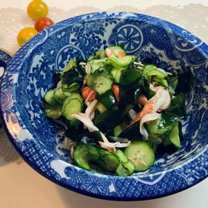 キュウリとワカメの酢の物 せんぜ畑のキュウリが 沢山採れるようになって 嬉しいわ😊