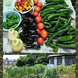暑かったですね🌞 雨降り後のお天気は 蒸し暑いですよ。 せんぜ畑の様子を見てきました。 キュウリ、ナス、トマト、ピーマンが2かご収穫した後 コリンキーやかぼちゃ、ユウガオの育ち具合を見てきました😁